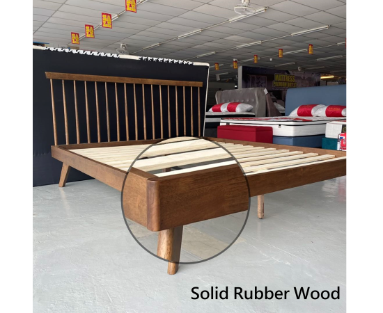 [HL] Full Solid Rubberwood Bed Frame HeadBoard Katil Kayu Queen Wooden Bed Base Modern Nordic Wood Platform Beds